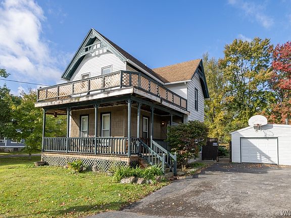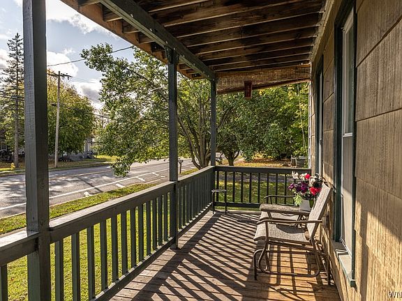 VINTAGE VICTORIAN HOME IN DARIEN CENTER IS A LANDMARK. KNOWN BY LOCALS FOR OVER A DECADE WITH THEIR YEARLY ELABORATE HALLOWEEN PRESENTATION. FAMILY, DINING AND SITTING ROOMS OFFERING HIGH CEILINGS, HARD WOOD FLOORING, AND CUSTOM BLINDS. FAMILY ROOM INCLUDES STAINGLASS WINDOW ABOVE THE WOOD BURNING STOVE ENCOMPASSED BY BUILT IN SHELVING/STORAGE WHICH ECCENTUATES THE HOME. ADDITIONAL SITTING ROOM WITH POSSIBLITY TO BE CONVERTED INTO 5TH BEDROOM. UPDATED KITCHEN WITH ISLAND, STAINLESS STEEL APPLIANCES AND CONVENIENCE OF 1ST FLOOR LAUNDRY. UPSTAIRS OF THIS GENEROUS HOME OFFERS 4 BEDROOMS AND AMPLE CLOSET SPACE. PRIMARY BEDROOM INCLUDES ACCESS TO UPPER WRAP AROUND PORCH WHERE YOU CAN RELAX AND ENJOY THE BEAUTIFUL VIEW OF DARIEN INCLUDING THE DARIEN LAKE THEME PARK. ENTERTAIN IN THE FULLY FENCED IN YARD. ABOVE GROUND, HEATED (GAS) 18FT POOL. NEW LINER 2023, FIRE PIT, SWINGSET AND CHICKEN COOP. THE 1.5 CAR GARAGE INCLUDES A WOODBURNER. PORCH PAINTED 2023, VINYL WINDOWS. HOME HAS BLOWN INSULATION, MOLD RESISTANT INSTALLED IN ATTIC AND BASEMENT 2023, SUMP PUMP 2017. PLENTY OF STORAGE IN ATTIC WHICH HAS 2 VENTILATION FANS INSTALLED W/ REMOTE. MINUTES TO THE THRUWAY.