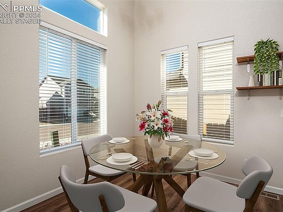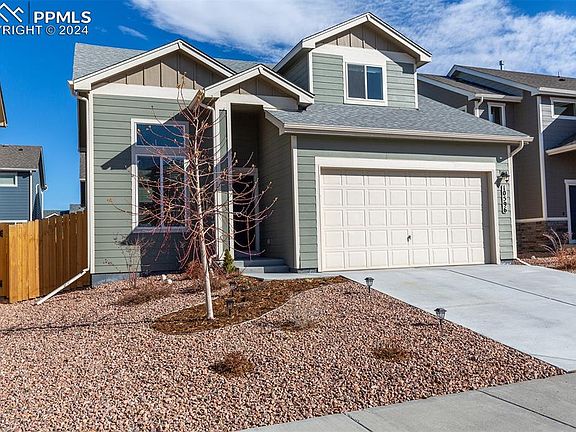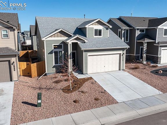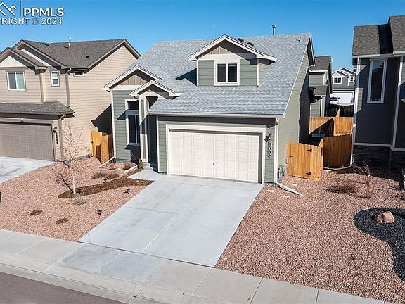 A Beautiful 3 Bed, 3 Bath, 2 Car Garage, 2-Story Open Floor Plan with Central A/C with many great upgrades. Enter from the Covered Porch with Luxury Vinyl Flooring and be greeted by a Charming Dining Room area that leads to the Open Updated Kitchen with a 5 Burner Gas Range, Stainless Steel Appliances, Roomy Pantry, Large Counter Top area with a Break Bar, Quartz Counter Tops, and lots of Cabinet Space. The Charming Family Room features Vaulted Ceiling, Great Natural Lighting, a Stunning Fire Place and Large Windows. The Primary Bedroom is conveniently located on the Main Level and includes an attached Bathroom with Double Vanity Sinks, Stand-in Shower and a Roomy Walk-in Closest. The 2nd Level includes Two additional Roomy Bedrooms, a Full Bath and a Comfortable Loft/Office Space and a Cozy built-in Seating Area. The Charming Backyard offers a Fully Privacy Fence, Landscaping and a Patio area that’s ideal for outside Entertaining and more. This Stunning Home also features a New Roof, Luxury Vinyl Flooring through out the most of the Main Level, Whole Home Water Filtration System, Quartz Counter Tops throughout, South Facing Driveway, Low Maintenance Front Yard and built-in Cabinets and shelves in the Laundry Room, a Workbench in the Garage and is close to School, Playgrounds, Trails, Fort Carson, Schriver and Peterson Air Force Base. This is a Move-in Ready and This is a Must See Home!