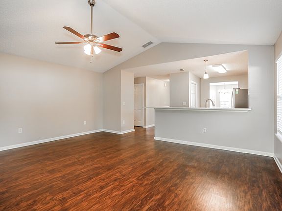 Please note, our homes are available on a first-come, first-serve basis and are not reserved until the lease is signed by all applicants and security deposits are collected. This home features Progress Smart Home - Progress Residential's smart home app, which allows you to control the home securely from any of your devices. Want to tour on your own? Click the "Self Tour" button on this home's RentProgress. Come see this three-bedroom, two-bathroom rental home in Jacksonville, Florida. Start your tour in the living room, where the lighted ceiling fan complements the gorgeous vinyl plank flooring. A sliding door opens to the back patio. Enjoy sit-down meals in the dining room, where a stunning bay window overlooks the front yard. A chandelier provides the finishing touch of elegance and illumination. Off the living room is a huge main bedroom, complete with two closets and an en suite bathroom with a dual-sink vanity. Plan to take a tour of this rental home now.