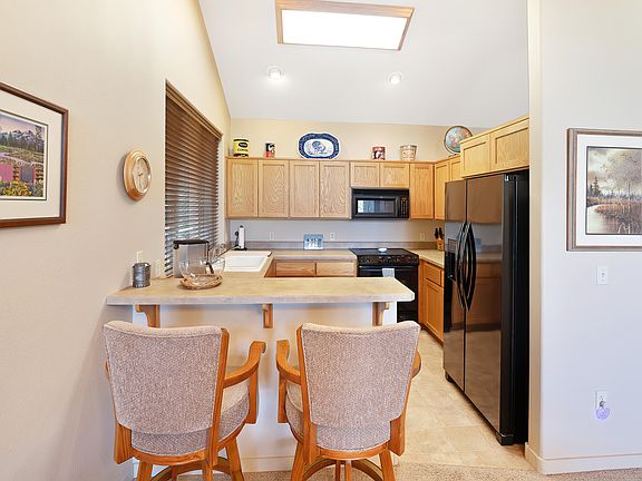 Furnished, Vacant, and Ready to Go. Come and see one of the few (if any) single owner units that's never been rented on the West Ridge of Eagle Crest. Pride of ownership for this second home charmer is obvious with the care and love this home has experienced over the years. It's ready for your family to create its own memories! This end unit boasts 2 bedrooms and 2 full bathrooms with room to add more sleeping arrangements in the living space. Consider this a tremendous opportunity for retirement living, a second home, a vacation rental, etc. Come experience the amenities and turnkey lifestyle of the West Ridge of Eagle Crest Resort. Enjoy the private deck or simply enjoy the floor to ceiling back windows / slider lounging in front of your fireplace. Spacious 2 bedrooms with the primary including double vanities, large soaking tub, separate shower, enclosed toilet, laundry, and a slider to the deck. See attachment for included furnishings.