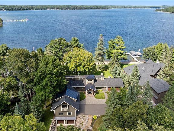 Rare opportunity to own a fully furnished lakefront estate on prestigious Big Trout Lake, part of the renowned Whitefish Chain. Featuring 128 feet of manicured sugar sand beach, hard sand bottom and perfect lake elevation with some of the best views on Big Trout, this property defines lakeside living. Extensively renovated with designer finishes and masterful craftsmanship, the home offers over 4,000+ sq ft with 4 bedrooms, 3 bathrooms, beautifully designed layout, large center island and custom cabinetry, chef’s kitchen including Viking gas cooktop, generous living and dining spaces, with all lakeside bedrooms. Expansive windows, soaring ceilings, and an open floor plan fill the home with natural light and BIG LAKE VIEWS. Wake up in the lakeside primary suite and step onto the large lakeside maintenance-free deck. Two indoor fireplaces and one outdoor add warmth and charm, creating an inviting atmosphere for both entertaining and everyday living.