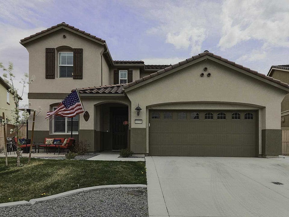 Stunning Damonte Ranch home. Many items are still under the original builders warranty of 5 years. Upgraded cabinets, plantation shutters throughout. Upgraded plank flooring. Shiplap accent walls. Backyard has been completely upgraded with water feature pond/fountain. 10x12 shed. Chicken coup (optional). Natural gas firepit. Artificial turf. Stamped concrete and custom pavers. Raised garden beds w/ drip. Dog run with dog house. Power on back wall and lighting. Front has an extra wide driveway with third parking space, front stamped concrete patio. Secondary gate on side. Full shelved garage. Fridge does not stay. Washer/Dryer does stay.