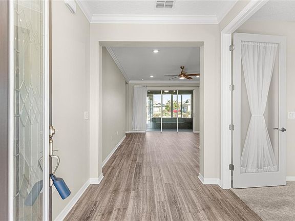 ***UPDATE!!*** New Price Reduction. Move in Ready!! Beautiful LVP. This custom built, smart home is 4 years new but better! Featuring a spacious corner lot in a quiet cul-de-sac. Large crown molding. All natural wood cabinets in kitchen & laundry with soft close and hung lower for better accessibility. Gorgeous quartz counters. 2 bedrooms with carpet. Great view of the RC flying field from your fully insulated, glassed lanai with tinted windows or your paver patio. Oversized garage with space for 2 cars and a golf cart along with epoxied floors and insulated garage door. Tankless hot water heater. And so many more positives to see. Call for your appointment to view today!