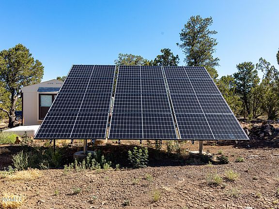 This cozy home is on 10 secluded acres of pinion pine and junipers. Sit on the large deck and watch for deer or gaze at the vast sunsets. This off-grid home runs smoothly on septic, a new 2600 gallon water tank, and a new 3.6 kW solar system with a new battery shed. It features new carpet, new roof, new AC water pump, new skirting, and much more. Two storage sheds give you space for your tools and toys. Property comes fully furnished. This private retreat is ready for country living or as an envied vacation spot. It is close to pavement and perfectly located 40 minutes from the Grand Canyon, 15 minutes from the main town of Williams, 15 minutes from Kaibab Lake, and 13 minutes from Bearizona.