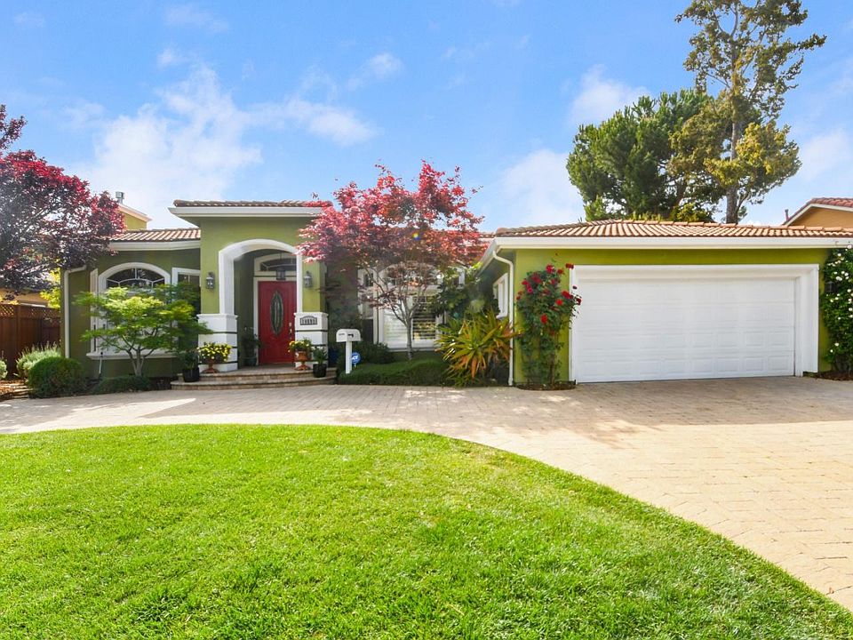 Prepare to be impressed with this elegant, open & bright single-story residence with high ceilings on approx. 9625 SF lot with a circular driveway! This luxurious, custom home, with 2 en-suites, equipped w/gas fireplaces, central vac & a chefs kitchen with high-end SS appliances, large island, custom pantry, & granite countertops. Enjoy designer finishes such as crown molding, coffered ceilings, recessed lights, skylights, plantation shutters & wet bar. Spa-like master bath has dual vanity, large shower & Jacuzzi tub. 2-car finished garage has wall & ceiling storage, epoxy floors & EV charger. Paver backyard is designed for relaxation & entertainment w/bbq area, garden chalet, dog run, vegetable garden, citrus trees, Japanese maple, bamboo & magnolias. Walking distance to Apple, De Anza College, YMCA, parks, banks, grocery & restaurants. Close proximity to 280, 101 & 85, downtown Cupertino & award-winning schools (including Monta Vista High). This is the home you've been waiting for!