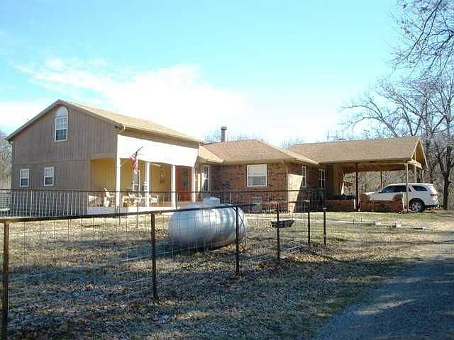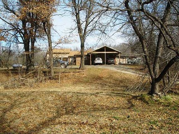 Nice home surrounded by trees on 8 acres on corner of intersection. Home could be 3 bed, 3 living, or 4 bed, 2 living plus 2 bath, 2 car carport. Nice covered patio with storm shelter, pond, shop area, plus out buildings. Fenced area great for livestock. Roof new in October 2012, CH&A new in February 2013, carpet less than one year old, plus many more updates. Courthouse says house built in 1945. Seller said in 1975 original house was totally remodeled and added one. Master bed and bath plus upstairs was added in approx 2006.