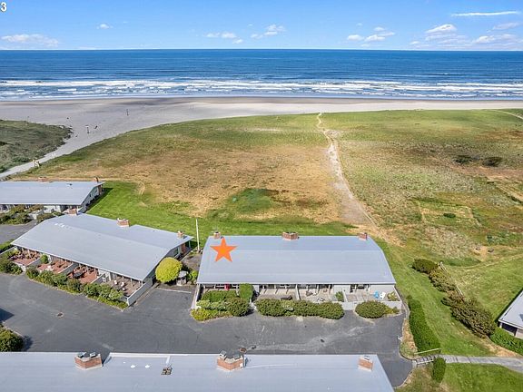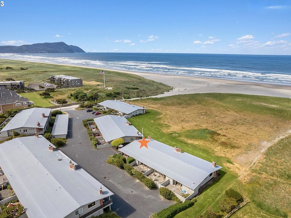 Welcome to Gearhart's ocean front. Rare to the market & move in ready, this stunner front row Pacific Terrace condo is the one you've been waiting for. Corner unit and set back from the street, offers a lovely locale. Complete with ample private front courtyard, and front and back patios. Updated with high end finishes throughout, cozy fireplace, and vaulted wood beam ceilings, this sought after one level layout flows with ease. Picture windows capture all the beauty of the ocean and dunes, while filling the living spaces with abundant light. Direct beach access out the door, dining & golf across the street, and downtown amenities all close in. Everything you need is right here for all the best that Gearhart has to offer. Keep it for yourself or take in some short term vacation rental income, this one is ready to go!