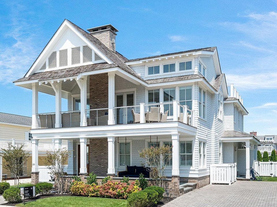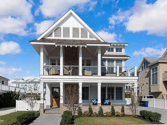 Discover the epitome of coastal elegance at 106 120th St, ideally situated just one house from the beach in the highly sought-after south end of Stone Harbor. This distinguished beach home presents an unmatched opportunity to own a residence with breathtaking ocean views. Upon arrival, the inviting front covered porch sets the tone for relaxation, allowing you to unwind to the soothing sounds of the ocean. The first floor features three exquisite ensuite bedrooms, a bunk room, and an additional full bathroom. A second living room offers direct access to the incredible backyard, which boasts a heated pool and spa, bluestone patio, cabana, and outdoor fireplace, creating an idyllic space for leisure and entertainment after a perfect day at the beach. The second floor showcases spectacular ocean views and an open concept living and dining area with cathedral ceilings. The great room exudes a bright and opulent ambiance with extensive glass, maximizing the ocean views. The kitchen is equipped with a Wolf six-burner range, a spacious center island, and sliding glass doors leading to a shaded ocean-view deck, perfect for enjoying the refreshing ocean breeze. The vaulted-ceiling primary suite offers a luxurious retreat with ocean vistas right from the bed. This floor is completed with an additional ensuite bedroom and a powder room. An interior staircase ascends to an expansive rooftop deck, offering sweeping views of the coastline. This home is highlighted by stunning selections, high end finishes, custom trim, white oak engineered hardwood floors, and an elevator. Recently completed in 2021 by Harbaugh Custom Homes and featuring a professionally designed interior, this residence embodies refined coastal living.