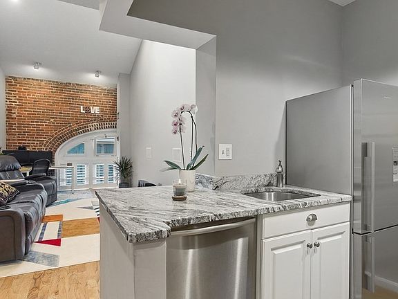 This Navy Yard end-unit condo was renovated in 2018 and boasts historic charm w/ an unbeatable location, one block from Pier 8. Youâll love the magnificent staircase, sparkling chandeliers, grand skylight-covered atrium, artistic fireplace & chic artwork! Inside, savor the exposed brick, gorgeous arched windows, bright skylight w/13 ft+ vaulted ceilings, and modern recessed lighting. Central air, ceiling fans, hardwood floors, and California Closet systems throughout. Living room features artistic windows, surround sound, and open-concept layout. Kitchen offers stone countertops, Fisher/Paykel/Bosch appliances, & custom pantry storage. Bedrooms offer lots of bright light and oversized closets. Bathroom offers updated ceramic vanity & glass shower door. In-unit Bosch washer/dryer. Highly desirable, heated garage spot w/direct elevator access. Walk to water shuttle, T station, free shuttle, & famous restaurants in the North End. Easy access to I-93.