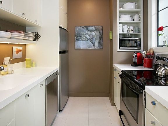 Navy Yard! Custom renovated w/ finishes rarely seen. Lavish 2 bed, 2 bath w/ deeded garage parking. One of the largest & most unique floorplans on site. Formal entry w/ guest bath. Dazzling vaulted ceilings. Dining area w/ display wall. Sleek white kitchen w/ modern vibe. Skylit livingroom, arched windows & white washed brick w/ rich hardwoods. A private hall leads to sleeping quarters. Guest bedroom flanked by custom closets. Sprawling master suite w/ laundry. Pro managed, 2 elevators.