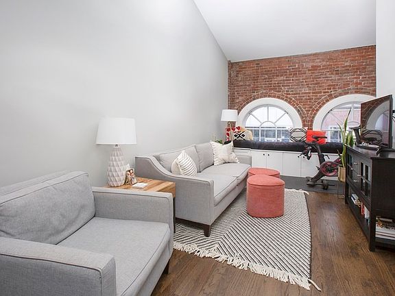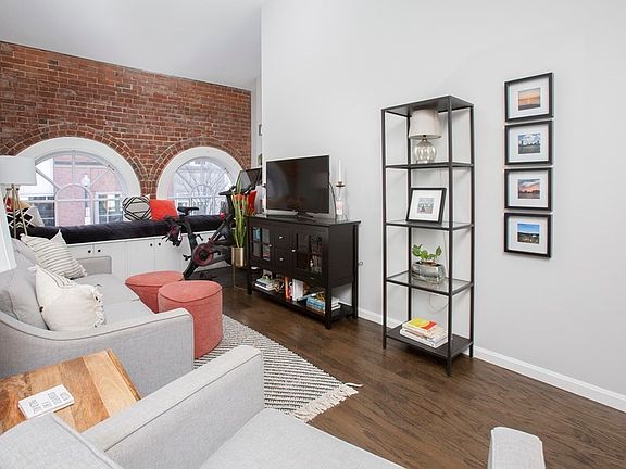 This inviting 1 bed 1 bath with deeded garage parking is simply a gem. Located at the newly renovated Basilica Condominiums in the Charlestown Navy Yard. The open layout maximizes the space filled with high ceilings, charming arched windows, exposed brick, smart built-ins and ample closet space. The owner has recently installed new flooring and upgraded accent lighting. The kitchen features stone counters and updated stainless appliances. Originally a ship building factory, the interior common areas have been beautifully renovated in a modern fashion while paying homage to the building's rich history. There are plenty of cozy conversation areas and gas fireplaces. A huge common laundry room is just down the hall. Enjoy easy access to the Boston Harbor walk, beautiful ocean/city views, fabulous cafes and restaurants. Head Downtown via water shuttle or complimentary Partners shuttle just around the corner. Short drive to 93 and Storrow Drive. Welcome Home to the Navy Yard!