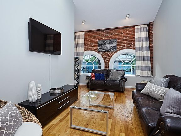 Furnished or unfurnished rental available at the Basilica.You will love living here so much you may consider rent to own. Step inside the brand new lobby & common areas and enjoy all the history around you that has been thoughtfully planned and artfully preserved. Enter your beautiful residence with exposed brick walls, arched windows, vaulted ceilings & historic detail. The bonus room is ideal as office or separate sleeping quarters. Entire apartment has been painted & kitchen has been recently renovated. Deeded GARAGE PARKING included. Ideal home for those wanting to live in the Charlestown Navy Yard, in an historic neighborhood, in quiet building, close to area restaurants & cafes. Across from the Harborwalk & minutes from Downtown Boston by car, complimentary bus or water shuttle. Convenient location for MGH and Spaulding Rehab. A short walk to the North End, Financial district & Cambridge. Life could not be easier than living here. A must see! Tenant Responsible for Electricity, Cable and Internet.