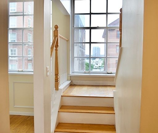 Welcome to the Navy Yard! Located in the historic Basilica building, this 2 bedroom, 2 bath Duplex style loft comes with its own deeded garage parking spot. Dramatic windows frame a breathtaking ocean view and spacious living room. Kitchen features granite counter tops. Take the splendid staircase to the top level where you have a master bedroom showcasing iconic original beams and an ensuite master bath. Second bedroom features ample storage/closet space and a separate guest bathroom. Condo features hardwood floors throughout, central air conditioning and two levels of living space as well as in-unit laundry. Live on the harbor's edge in the Navy Yard near the water taxi's to Rowe's Wharf. Free shuttle bus service in close proximity to the highways, public transportation, Whole Foods, and Logan Airport. Extensive renovation of a full interior design makeover, new roof, skylights and exterior pointing in this professionally managed elevator building.