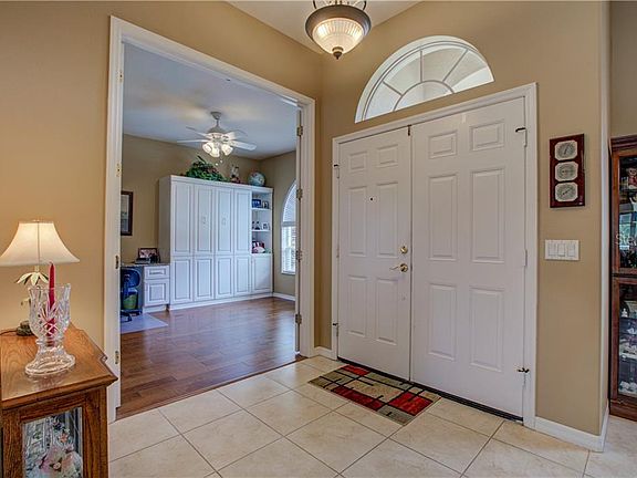 Privacy, serenity, and craftsmanship describe this meticulously maintained home on a very well-situated lot in Country Creek. Feel your troubles go away as you travel into the neighborhood and pass under canopy oaks and the well-kept neighboring homes. Entering the French front doors, you are greeted by fabulous views of the backyard retreat through the 3 panel sliders. Your view includes a large covered lanai with screened pool area and views of the expansive neighborhood lake. When entering the home, friends and family will gather around the chef's kitchen featuring upgraded stainless-steel appliance including a stove with double oven. The kitchen offers a breakfast nook in addition to the formal dining space. Escape to your master suite with wood floors, en-suite bath with garden tub, roman shower and split vanities. A separate office space is connected to the master suite features a Murphy bed for your visitors. At the end of a long day retreat to your covered lanai and watch the sunset over the community park and lake behind the home. Enjoy the convenience of a whole house vacuum. Feel secure with the newer hurricane shades installed in 2019. Country Creek provides a rural feel yet is close to convenient shopping (Costco, Publix, Earth Fair, UTC Mall). It is easy to get to the area's top-rated beaches as well as an easy drive to Tampa and St. Petersburg.