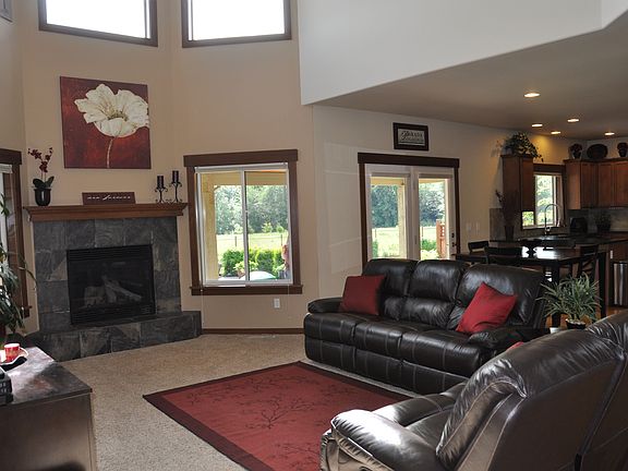 Entertainers home with plenty of space. Luxurious 4 bedroom, 2.5 bath in Mountain Meadows. Master on main floor with fireplace and 5 piece bath with door to the patio. Granite counters in kitchen and beautiful fireplace in family room. Office off the front door and huge bonus space at the top of the stairs. Covered patio is HUGE,pine lined ceiling has lights and fan, adjacent is an an arbor, hot tub and outdoor kitchen. Fully fenced property backs green space with pond and walking path.