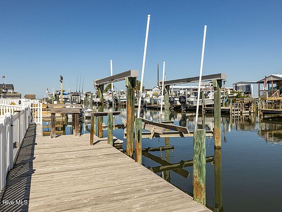 Canal front home in AB offers gorgeous water views, supreme sunsets & deep water dockage for multiple boats! This home on a well landscaped fenced lot offers easy access to Bogue Sound, the ICW, sport-fishing & all the sandbars & shores your heart desires. You'll find great indoor & outdoor spaces for living your coastal life! The canal front boat dock has a lift and room for another boat as well as room on the water for more dockage if a buyer would like. There is great concrete space under the street side deck for gathering & a cement patio under the waterside deck for grilling & hanging out entertaining family & friends. Sunsets abound on the waterside upper deck. 1st floor features a bonus room that was used as a third bedroom, a full bath and the entrance to an unusually large storage room for all your beach, water, boat and fishing toys or space to add more living space if needed. The main living area on the 2nd floor, features an open living room/kitchen concept with a gas fireplace for cozy winter days, kitchen bar, ample space for a dining area and lots of south facing windows for tons of natural light. A good size laundry room off the back entrance is convenient when coming in off the boat. Two spacious bedroom and baths complete the interior of this waterfront home with the principal suite having a full-sized walk-in closet. If you have a lot of toys and gear, you will be very happy with an additional under house storage room with it's own separate entrance. And a generator completes this package deal! You'll be a short 5 min bike ride to ''The Circle'' in AB offering a variety of restaurants & beach access. Shopping, other consumer conveniences & the movie theatre in Atlantic Station are a short drive away. Across bridge on the mainland in Morehead City are schools, hospital facilities & lots more restaurants & shops. It's time you enjoyed the island life. Purposeful permanent or 2nd home living on the Crystal Coast can be yours!