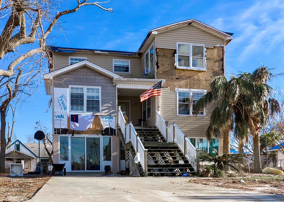 5BR/4BA GULF VIEW single family home on a large lot with an irrigation system to take care of it all. Ground level contains a lalrge entertainment room with a full kitchen with a Gulf View and a private bedroom and bath. The next level is your living area with all wood floors, a fireplace, solid surface countertops in the kitchen, a bonus room with a great Gulf view, large laundry room and full bath. The top level has the 3 bedrooms plus the master suite. Master BR has a trayed ceiling and French doors that lead to a private enclosed deck overlooking the sparkling waters of the Gulf. Located in a quiet neighborhood only steps to the beach (less than 1/2 a block), this home would make the perfect retirement home for you , second home for you and your family or a GREAT vacation rental. Plenty of room for a pool and a boat!