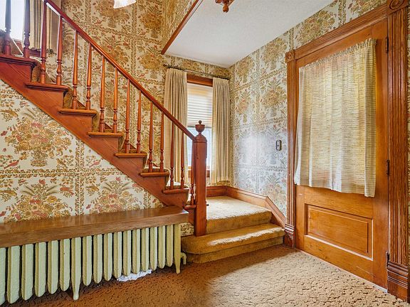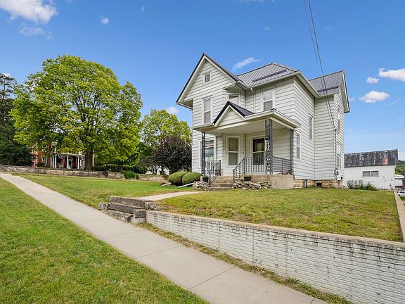 Step back in time with this charming 1898 2-story conventional home, brimming with original character and unique touches throughout. Located on a corner lot just minutes from downtown and the local school, this 4-bedroom home offers spacious living areas and charm though out! The upper level features four bedrooms, a cozy office area, and a full bathroom. But, we can not forget the walk up attic with plenty of room for storage or another bedroom! On the main level, you'll find a huge living room, a dining room with built-in cabinetry, and a large kitchen that has been updated over the years. There's also a convenient half bath and main-level laundry. The basement offers a finished area perfect for a bar or another family room, ideal for entertaining. The exterior shed offers even more storage, while the lower level once served as a garage area. With a new boiler system, some updated wiring, and plenty of historic charm, this home is a must-see for those looking for a unique property full of character!