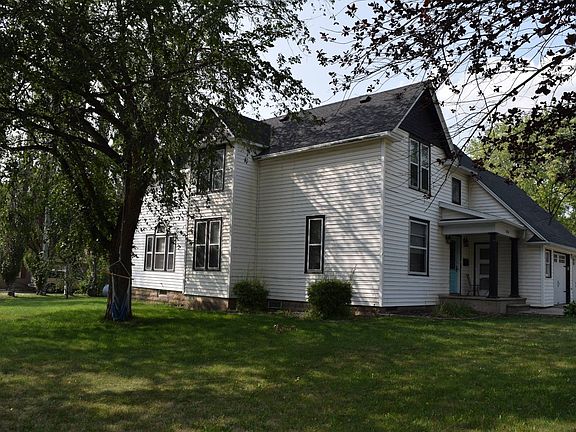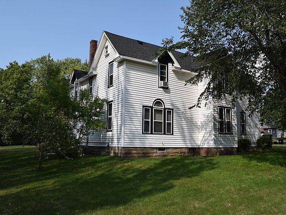 4-bedroom 2 and 1/2 half bath older home with character; 3,170 sq. ft. of total living area on a corner lot. Nice trees, rear patio, vinyl siding, 26 x 24 attached garage, hardwood floors and lots of storage space. The upstairs has the 4 bedrooms and 2 full baths, plus a large storage area. The main floor has kitchen, living room, dining room, sitting room, family room, 1/2 bath, office, and laundry all on the main floor. The property has concrete driveway, plus a detached 24 x 16 insolated garage/workshop. The house has central air/AC and propane forced air heat.