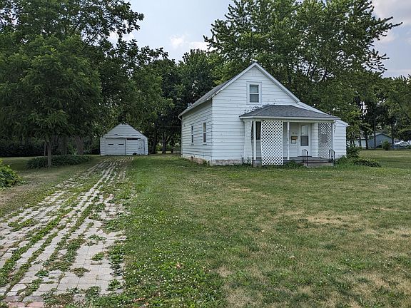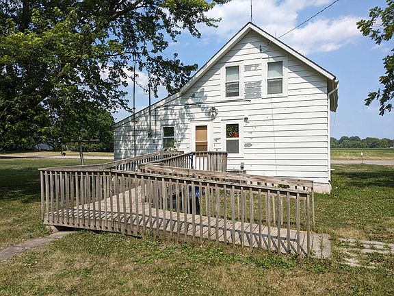 Escape to this charming 3-bedroom, 2-bathroom home nestled on a spacious 1/2 acre lot, offering breathtaking panoramic views of a picturesque farm field. Enjoy year-round comfort with central air, forced air heating, and the convenience of 100 amp circuit breakers. The detached garage provides ample parking and storage space. Unwind on the covered front porch while taking in the serene farm field vistas. This home also features a wheelchair accessible ramp, a main floor bedroom, and laundry facilities for added convenience. With steel siding, city water and sewer connections, and a small-town county feel, this home is an exceptional opportunity to experience peaceful living at its finest.