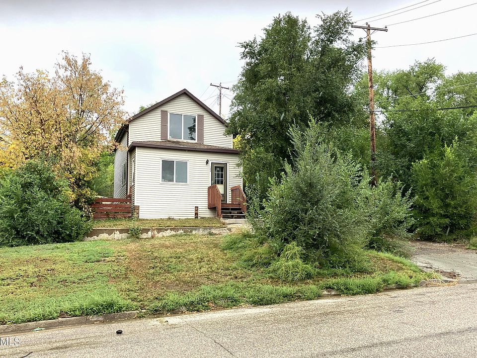 This 2 story 2 bed, 1 and 1/4 bath home needs some TLC but can be a cute home. The porch at front of the house is 6 x 17. The main floor includes the kitchen, dining area, living room and 1/4 bath. The upper level has 2 bedrooms and a full bath. The full basement is unfinished but does have an egress window for the possible addition of a 3rd bedroom. It has a patio area in back yard (by the house) to enjoy the outside. Property is being sold as is where is, in it's current condition.