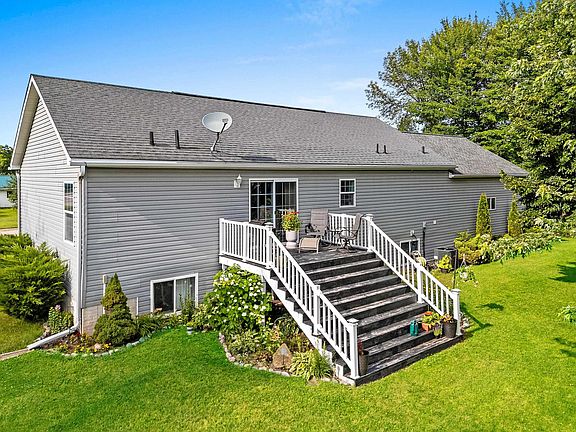 Over 2,700 Sq Ft in this 5 bedroom 3 full bath home on a double lot with a 2 stall Attached garage and 3 stall Detached garage. You will love this open floor plan with spacious kitchen, all appliances included and huge peninsula. Dining room with patio doors to deck. Large Primary bedroom with walk in closet, Primary bath with stall shower and soaking tub. The lower level is completely finished with a rec room and egress window to let in all the light, 2 bedrooms with egress windows and full bath. Very private double lot close to a park and elementary school.