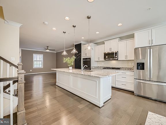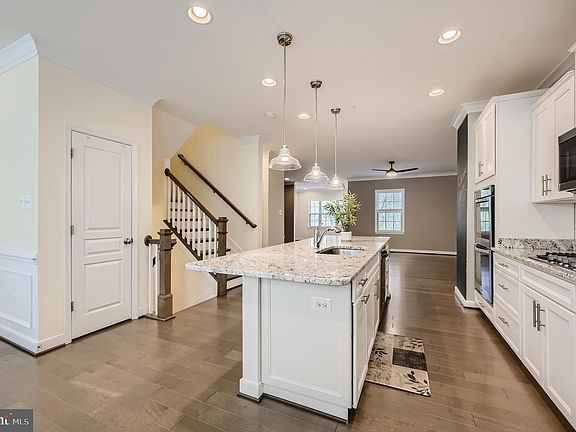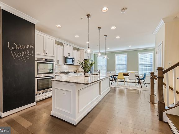 Now available in Admirals Ridge is this exquisite 3 bedroom, 3 full and 1 half bathroom home packed and loaded with upgrades. The home was built with bump outs on all three levels to increase the living space and features a stunning gourmet kitchen complete with granite countertops, stainless steel appliances, a large granite top kitchen island with cabinets, a five burner built-in gas range, refrigerator, double wall oven, and a large breakfast area or dining area. The kitchen-family room combination is perfect for entertaining. The main level boasts gleaming engineered hardwood floors, a half bathroom, recessed lighting, crown molding, chair railing, and wainscoting. Also included on the main level is a sunroom with a sliding glass door that leads to the rear of the home. Upstairs you will find beautiful cathedral ceilings that were an upgrade to the home. The large owner's suite has a bonus sitting room, a walk-in closet as well as an attached full bathroom that includes dual vanities, a tile floor, a soaking tub, and a stand-up tile surround shower. Also on the same level are 2 additional bedrooms, another full bathroom, and an upper-level front-loading washer and dryer. The lower level of the home is fully finished and includes a full bathroom and an entrance to the large 2-car garage that comes with an installed 50 amp-rated electric car outlet. The rear of the home is fully fenced in and includes a stone patio that was added by the owner. The location can not be beaten. An elementary school and grocery store are within walking distance and the home is located on a non-through quiet street. This home is close to the Severn River, Annapolis, and Cape St Claire. Great shopping, restaurants, and entertainment are just minutes away. Take a tour of this incredible home today!
