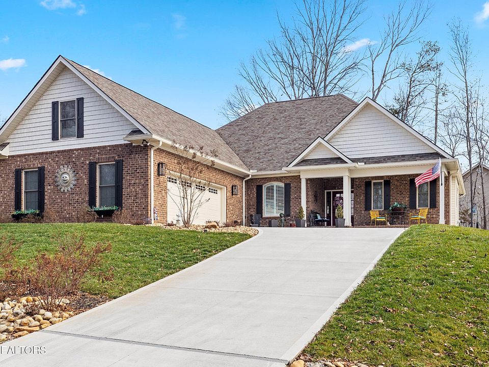 Don't miss out on this gorgeous +/- 2,400 square foot home conveniently located in the Toqua Greens neighborhood of Tellico Village.! The best of both worlds....practically a brand new home (2022 build) without you having to worry about adding landscaping and installing window treatments. From the moment you pull up to the home you will note the quality and beauty with an all-brick front, generous front porch and spacious 2-1/2 car courtyard garage. Walk through the front door into the airy and light-filled great room featuring beautiful wood floors, tray ceiling, stack stone gas fireplace and sliding glass door out to the covered back patio. Main room has several dining area options: one is the dining area in the front of the house with tray ceiling and plantation shutters, which the owners have used for a bar & sitting area. The other is a breakfast area that has a tray ceiling, is large enough for a full-size dining table and looks out over the beautifully landscaped backyard. The kitchen is outfitted with stainless steel appliances including induction stove cooktop and oven that is also a convection oven and air fryer (there is also a propane hook up behind the stove for those who prefer gas), drawer microwave, wood wrapped vent hood, coffee bar, walk-in pantry with ample storage and a large granite-topped island that has extra storage in front. The home also has a whole home water purification system. Split bedroom floor plan with the wood floored guest bedrooms and tiled guest bath behind the kitchen and breakfast dining area. The primary bedroom, which is located on the opposite side of the great room, has wood flooring, a tray ceiling and door out to the covered patio. The primary bath has a large, granite-topped, two sink vanity, walk-in shower with no glass to clean and large, walk-in closet with ample hanging racks and extra storage in container store racks under the hanging shelving.