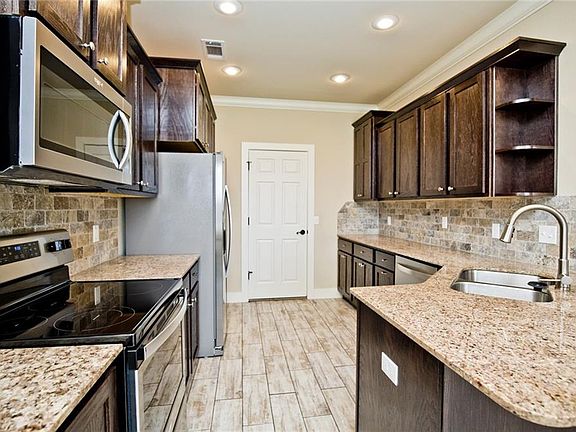 Spacious 3 bed 2 bath home in central Pea Ridge just minutes from Bentonville and Rogers. This open floor plan features hardwood tile throughout the common areas and in the kitchen enjoy granite counters and stainless steel appliances including the fridge. This home also features large carpeted bedrooms and in the master bathroom you will find plenty of storage and counter top space with dual sinks and a large walk in shower. Also included with this home is a front load Washer and Dryer! Outback lounge or BBQ on the spacious covered patio that opens up to a level spacious yard. Lawn care and landscaping is included. Yards are not fenced other than a divider fence between units. No Cats allowed, and only dogs under 30 pounds allowed with an additional $250 refundable pet deposit. This unit is apart of the Willow Run duplex community that is professionally managed