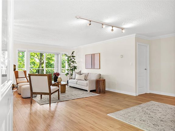 Welcome to your private oasis in the heart of View Royal! This inviting 2-bedroom, 2-bathroom corner unit townhome is tucked away at the end of the complex, providing complete privacy surrounded by lush trees. Including over 850 sqft of outdoor patio/balcony space, an open living area and a spacious kitchen making this home perfect for entertaining. Other features include a large primary with an en-suite and balcony access, garage, in suite laundry, fireplace and ample storage. Offering main floor living with no stairs and lots of natural light coming in from three sides. Centrally located, a short drive to downtown, costco, or to airport/ferries. Or leave the car in the garage! This home is across the street from Admirals Walk Shopping Centre, and minutes away from beach trails, bike trails and major bus routes. This townhome provides the ideal combination of comfort and convenience. Don't miss out on the opportunity to call this peaceful retreat your own—schedule your showing today!
