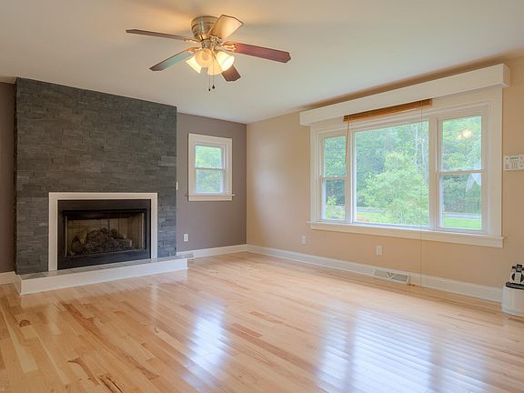 Rare find in Newport! This well appointed home sits on just under an acre, surrounded on three sides by farm land which attributes to the incredible privacy you feel when visiting the property. Inside you will be delighted with the real hardwood floors throughout most of the home, and new ceramic tile floors in the bathroom and laundry room. The kitchen boasts all new stainless steel appliances and abundant storage in the newly refinished white cabinets. The stunning stacked stone fireplace in the living room along with the custom light fixture truly set this home apart from the rest. Outside the home you will find the one of a kind workshop, complete with a fully functional built-in car lift, half bathroom, and of course, the custom made bar. Two other outbuildings sit on the property, offering additional work and storage space. This gorgeous property will not last long, so be sure to schedule your showing today!