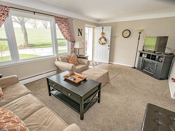 Adorable, clean, well-maintained ranch on a quiet street. Walking in the front door you are welcomed by a coved ceiling and a cozy family room. The kitchen has plenty of cabinet space and even has crown molding. All windows have been replaced in the last 4 years. The neighborhood is very quiet and neighbors are friendly. Right across from elementary. Also has non-conforming 4th bedroom in basement! All bedrooms have ceiling fans. Perfect starter home! Affordable, efficient boiler heating system. Ceiling fans in each bedroom. Large backyard with large deck. Backyard is large enough for swing set, also fenced in. Also has a fire ring/pit. Huge laundry room with loads of storage, including under-stair storage room. Coved ceiling in living room. Crown molding in the kitchen. All main floor windows have been replaced in the last 5 years. Front door has been replaced in the last year as well. Bathroom flooring new in the last 2 years. Landscaping redone last summer with beautiful perennials. Brand new garage door opener. Call today for a private showing!