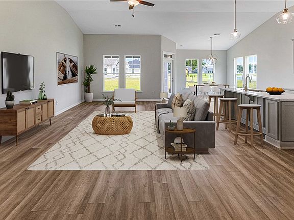 Kingsland’s most trusted local builder is proud to offer our Spring Valley II plan. Efficient living at its best! One look at this ranch style 3-bedroom 2 bath home and you will agree. As you step in, the bright, airy great room welcomes you with its cathedral ceiling and open design. Entertaining is easy. Guests can stroll from the great room out to the covered patio area. This smartly designed kitchen connects to a large breakfast room and has ample countertop space, stainless steel appliances and 42-inch cabinets and granite countertops. The common areas come with modern wood look Vinyl Plank Click Plus flooring and carpet in the bedrooms. Not to be overlooked, this split floor plan ensures the primary suite its privacy and offers two perfectly sized bedrooms. With double vanities in the primary bath, a finished two-car garage and fully sodded yard with irrigation, this is a must-see on your dream home shortlist! Home is move-in ready! Pictures, features, and selections shown are for illustration purposes and may vary from the home built. All builder incentives applied.