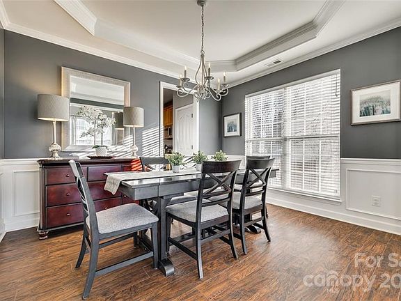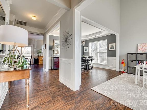 This is the one your buyer has been waiting for! Great Fort Mill location but close to River Gate shopping and quick access to I-77/485. Well maintained 4 bedroom home with new engineered wood floors thru main level. Foyer entry is open to vaulted living room/flex space and formal dining. The eat-in kitchen offers SS appliances, desk area, and plenty of cabinets and counter tops. Slider leads to nice deck overlooking fenced backyard. Cozy gas fireplace in the family room. Nice open landing upstairs with room for a study area. Vaulted Primary bedroom w 2 walk-in closets, double sinks, garden tub/sep shower. 3 nice sized secondary bedrooms, one is large enough to be a bonus/playroom. 2nd floor laundry room. Trane HVAC in 2017. Lots of fresh paint and updated fixtures.
