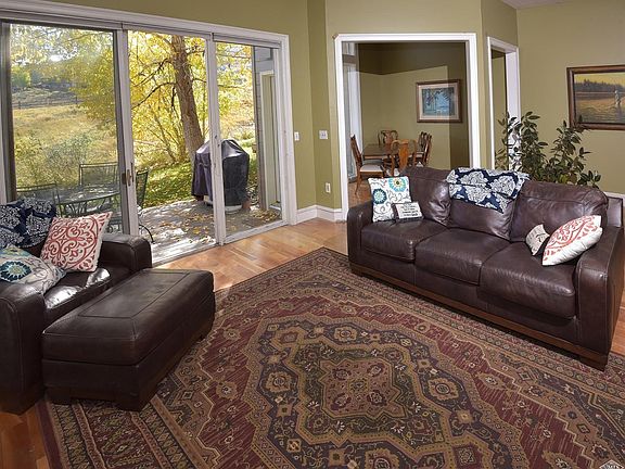 Peaceful location in Homestead backing up to open space and trails. This light filled townhome boasts tons of storage thought out and in the oversized 1 car garage. The beautiful wood floors in the open great room featuring a wood burning fireplace and bonus sun room. Large master suite with updated master bath, 2nd bedroom has private deck and 3rd bedroom is great for nursery, office or den. Back Trex deck flows to the grass covered back yard.