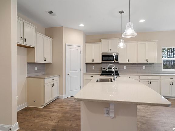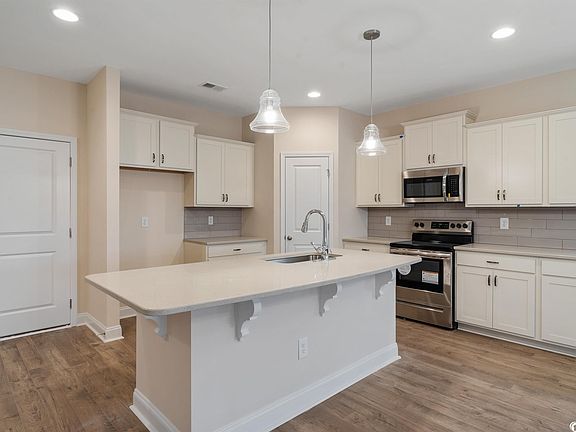 - Features: Kitchen Exhaust Fan, Kitchen Island, Pantry, Stainless Steel Appliances, Solid Surface Counters