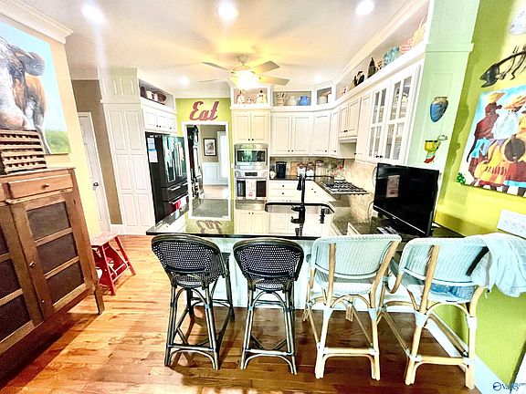 • Features: Ceiling Fan(s), Crown Molding, Recessed Lighting, Smooth Ceiling, Wood Floor