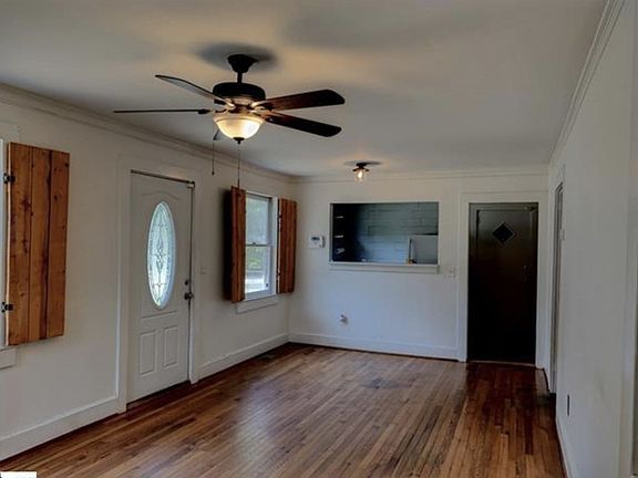 Move in ready, just a short walk Downtown Easley. This adorable bungalow with fenced in yard and mature trees. Step in to the living room to admire the original hardwoods and custom wood shutters.The kitchen has a farmhouse look with custom cabinets doors. There is an open feel from the kitchen, it overlooks the dining and living room. Great for entertaining! There are 2 spacious bedrooms and a full bath. Did I mention the large laundry room? You can fold everything right there on the counter top with lots of storage in the cabinets. From the kitchen, exit the small mudroom to the covered porch and enjoy the large oak tree and mature landscaping. Lots of potential for the block workshop with electricity located behind the carport. Come see this one before it is gone.