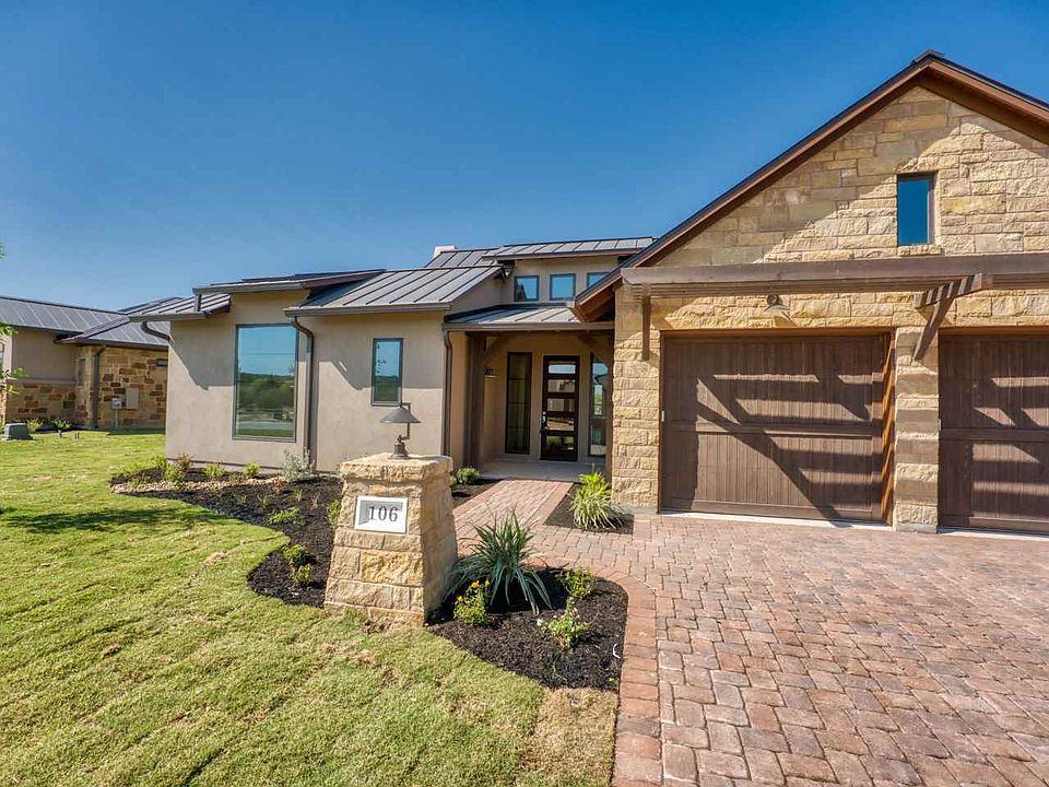 Exceptional lifestyle offered at this Golden Bear Reserve at Summit Rock home located on the 17th fairway of the Jack Nicklaus Signature golf course. Soaring double height ceilings with beams, wonderful open floor plan leading out to the covered patio with outdoor kitchen. Vaulted ceiling in the master bedroom that looks out onto the greenbelt and golf course. Wood flooring in the entry, dining, living and greatroom. Premium granite counter tops and Bosch stainless appliances in kitchen. Two separate bedrooms each with private bathrooms. Golf cart garage and much more. Be part of this quiet,gated community. Full waiver through the Medallion level membership included upon application and approval.