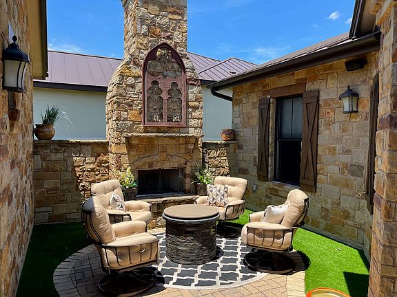 Extraordinary lifestyle offered in this refined golf course home within the gated Golden Bear Reserve at Summit Rock. Former model home built by Bob Rowan of Westway Custom Builders. Located on the 17th hole of the Jack Nicklaus Golf Course, you have breath taking views of the fountains and fairway. Beautifully appointed with thoughtfulness to every detail. This home has a charming courtyard entry with fireplace to set the stage. Off the courtyard is a 1/1 casita perfect for family and guests. Gorgeous one level living interior features wood and stone floors. Soaring vaulted ceilings with exposed wood beams and 8 foot doors. The large owners suite has outdoor access, and you will find another guest suite, and separate office in the main house. State of the art kitchen with gas cooking and spa like baths include granite counters, stainless appliances, and numerous other custom finishes. Outside entertainment is peaceful and convenient with a spacious covered patio and outdoor kitchen overlooking the golf course. The Summit Rock PID is paid in full and the furnishings could convey with a separate bill of sale. Don’t miss this opportunity – schedule your showing today.