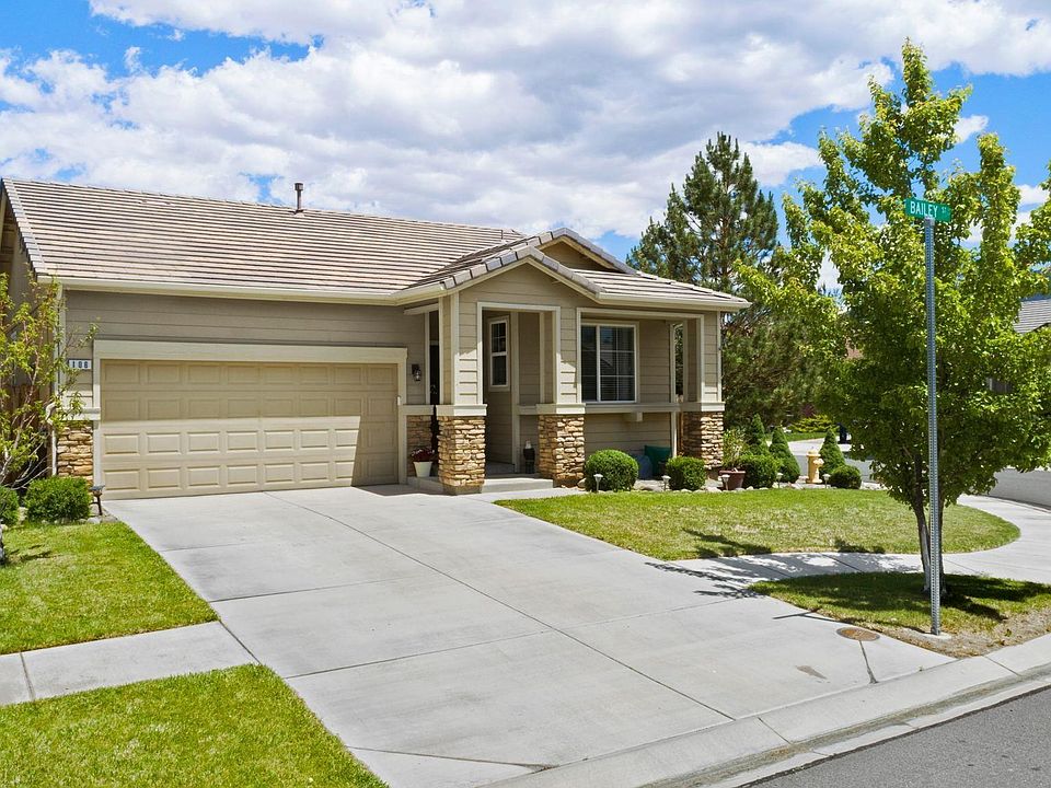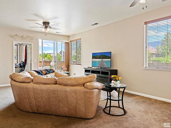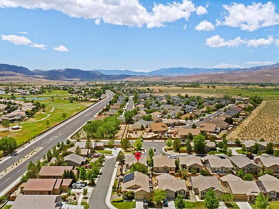 Priced to Move! Well maintained 2 bedroom PLUS DEN - great floorplan! Corner lot location, spacious backyard w/large patio, marble flooring in entrance & kitchen + gorgeous quartz countertops, custom backsplash, breakfast nook, tons of cabinets, plenty of counter & storage space, center island + an under-mount "farmer" sink. The bright open floor plan has plenty of room for a formal dining area & a large living area, bright, open, well cared for! Landscaped w/auto sprinklers, large patio w/mountain views, gated community close to Dayton Valley Golf Course, schools and more. Call today!