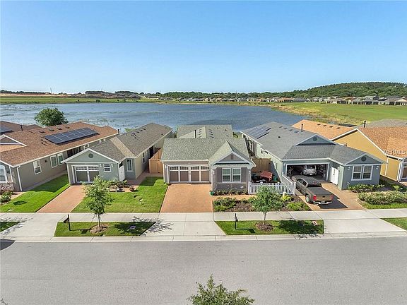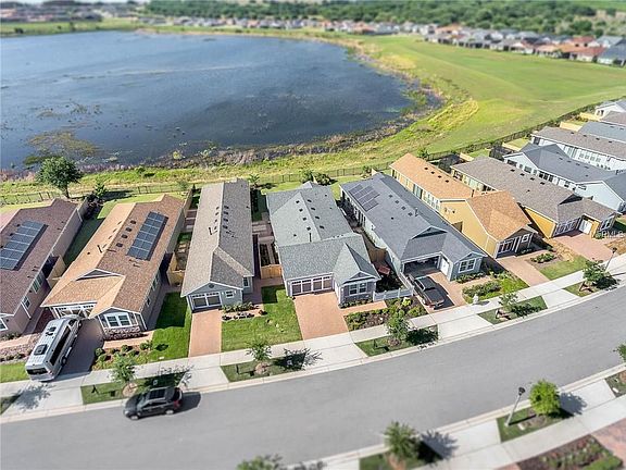 WOW, this Capri villa has unbelievable views, overlooking School House Lake(click video tour 1 icon, upper left); you won't be able to build on a lot like this. The well appointed kitchen, offers Silestone counters, high quality wood cabinets and gorgeous back splash that ties in the stainless steel appliances. This open concept home has beautiful wood-look tile floors throughout with crown molding to add to the numerous upgrades. The custom built-in desk and upper cabinets in the den & custom closet in the master suite, will keep your things organized. To make this home even more desirable, the double pane Low-E windows, radiant barrier, Levolor Cellular Shades & tankless gas water heater make this a energy efficient home to help keep the utility cost down. Trilogy Orlando is a guard gated community with the 57,000 square foot Magnolia House that offers a resort style indoor/outdoor pool and spa, event room & lawn, tennis and pickleball courts, bocce ball, restaurant and bar, demonstration kitchen, massage room, men and women's spas, arts & crafts room, state of the art fitness center and much more, plus many activities and events to keep one busy!! The HOA fees include lawn/shrub maintenance, basic cable w/premium channels, internet with landline, home monitoring, street lights and guard gated front entrance. Don't miss the opportunity to own a beautiful home w/premium lot in the highly sought after community of Trilogy!!! Featured upgrades list is in attachments.