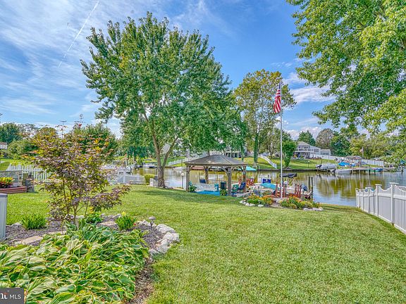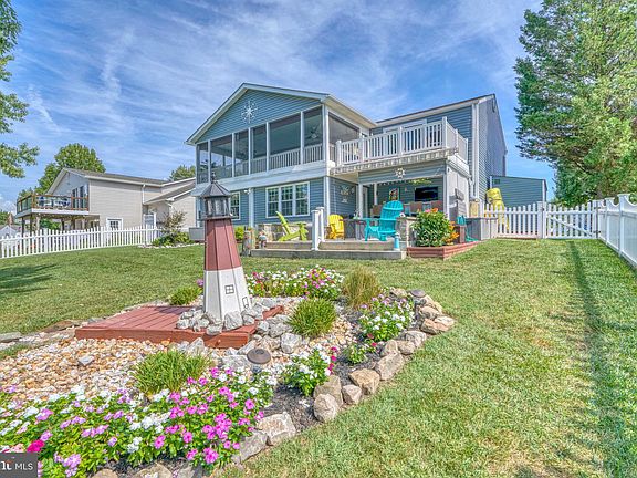 Stunning waterfront home in sought after Rumsey Island! Main level features primary bedroom with private deck overlooking the water view and attached primary bath. Large 2nd bedroom with potential to add a 3rd bedroom and second full bath. Living room and updated kitchen with granite countertops with water view and huge island leading to screened in deck with sun shades. Lower level features 3rd bedroom, half bath, family room with gas fireplace, huge wet bar, and another living room. Walk out to entertainer's dream... newer outdoor bar with electric, newer patio with retaining wall and awning, another patio with pavilion and electric, fenced in rear yard. Private floating pier with 4 boat slips! (No Flood Insurance Required) Updates include new siding (2022), new roof (2018), new garage door opener (2023), Water Heater (2023), New Tubin Main Bath (2023) A must see!
