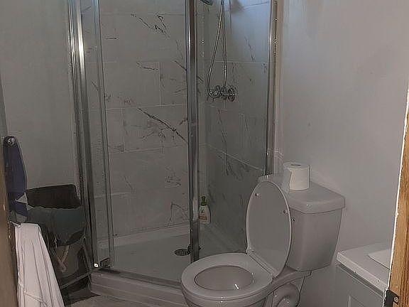 Renovated bathroom, shower,kitchen, floor. It's a trailer in a campground. Two separated rooms. The kitchen between. Two exits. Front is the deck. Pool in the community.