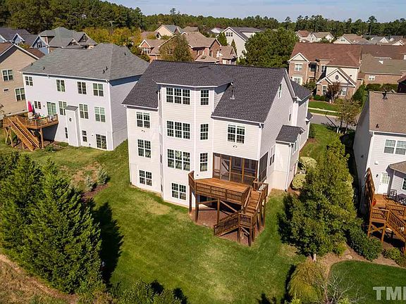 Prime S. Durham location! Hills at Southpoint! Immaculate 5 BR, 3.5 BA plus office! Open entry to LR/DR w/hardwds. Dramatic 2 story windows in Fam Rm w/gas FP. Spacious Eat-in Kit w/granite, tile bksplsh, gas cooktop & tons of storage. Huge Master has sitting rm, dual WIC, his/hers vanities & garden tub w/sep shower. Large 5th BR w/dual closets could serve as Bonus Room. Full daylight walkout Basement plumbed for 4th BA. Screen Porch. Walk to Comm Pool and the Amer Tobacco Trail. SEE VIDEO WALK THRU!