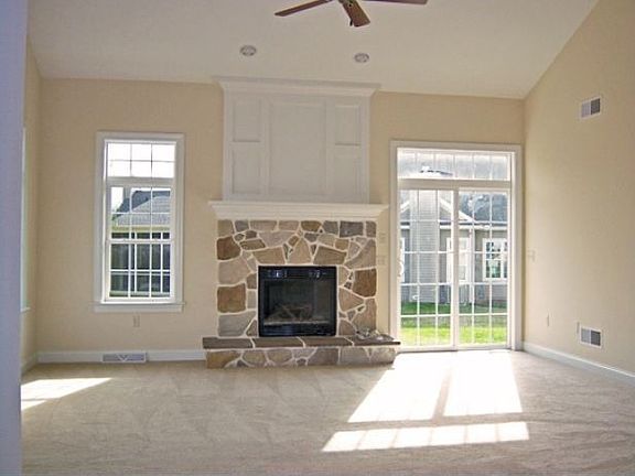 This New Home Features: * Two-story triplex carriage home * 2,572 sq. ft. * 3 bedrooms, spacious loft * 2.5 baths * Two-car garage * Wide trim detail throughout home, upgraded paint selections * Hardwood flooring in Foyer and Breakfast Area * Two-story ceiling in Foyer and Family Room with cozy gas fireplace * First-floor Master Suite, including a walk-in closet and private bath with 5i?1/2 tile shower * Upgraded Classic Kitchen with Corian countertops and tile backsplash, upgraded sink and fixtures; Dura Ceramic flooring * Wood crown molding in Dining Room, chair rail with block detail * Unfinished storage area on second floor