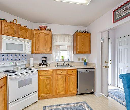 Beautiful Villa in Martinsburg backing to trees. Very well maintained move in ready, one level living convenient to Hospital, Medical Offices, Shopping. Carpeted Living Room, Dining and Bedrooms. Laundry Room (washer & Dryer do not convey) Water Softener conveys as is, Alarm system conveys but is not Active. All electric heating, A/C, Stove, Refrigerator/ice maker, Microwave Oven, Dishwasher, Disposal Freezer, Ceiling Fan, Six Window treatments Convey. Professionally Kept Lawn. Easy Access to Main routes to MD and VA.