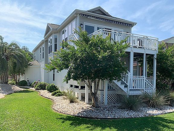 Waterfront property w/boat dock, 10,000lb boat lift & tons of amenities featured in this neighborhood. Location is convenient to boating & fishing areas as well as easy private ocean access & adjacent to country club & golf course. Inside you'll find an upscale 2-story home w/4 bedrooms, 2½ baths, open floor plan with beautiful direct sound water views and access. Great room has a gas fireplace and wet bar, wood flooring throughout house. Master bedroom has a private deck & the great room also has a private deck, facing the marina & sound. New HVAC, HardiePlank siding and windows, plantation shutters, driveway and encapsulated crawl space.