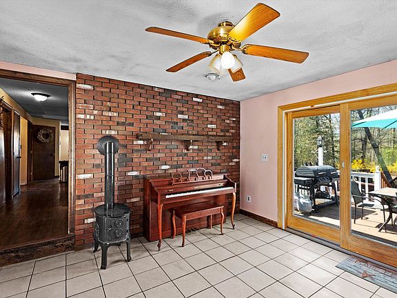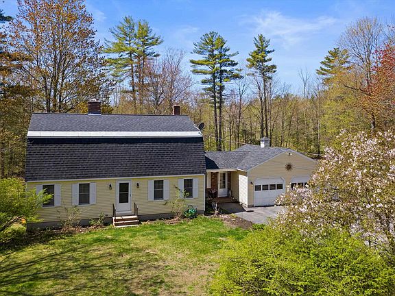 Extremely rare five bedroom home with attached two car garage situated inside wooded community in Milton, NH. Property is beautifully landscaped with flower and garden beds spread around the lot. First floor has entry way that walks you into the home past your first floor laundry room into a kitchen dining area with multiple exits to the back yard. It also has first floor living room, one bedroom and a full bath. Second floor has four bedrooms and a second full bath. Basement is partially finished with utility room off the side and walk out to back yard. The grounds are built for entertaining with multiple decks, hot tub and pool. A very short walk the property has deeded lake access to Northeast Pond.
