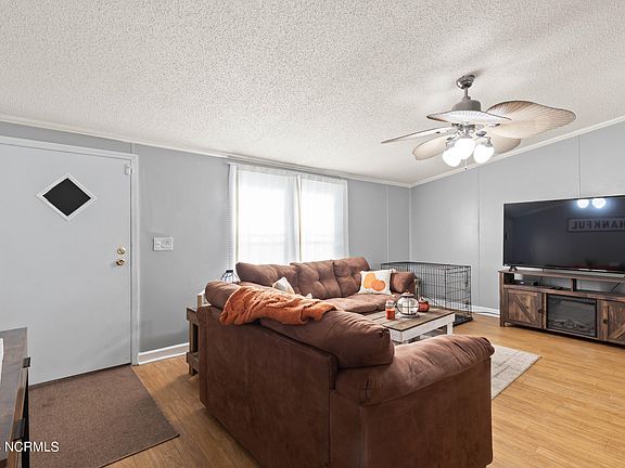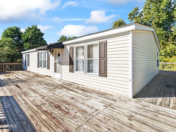 3 Bedroom, 2 Bath doublewide avail NOW in Sneads Ferry!! Walking up to this home you are welcomed with large front yard and wrap around deck! Just inside you will notice to spacious open living room with a bar to the kitchen. The kitchen is complete with new paint, all white appliances, a breakfast nook, and plenty of cabinet space! To the left of the home you will find two guest bedrooms and a guest bathroom. To the right is the master suite complete with a walk in closet, garden style tub, and standing shower.